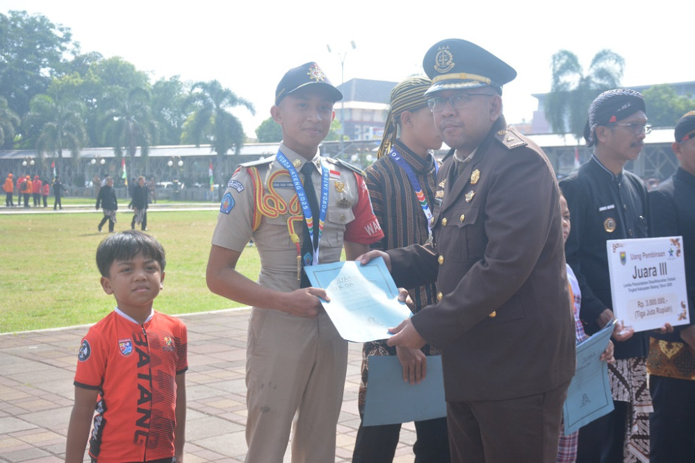 Batang - Pemerintah Kabupaten Batang memberikan penghargaan kepada pelajar berprestasi dalam rangka Peringatan Hari Ulang Tahun Ke-60 Kabupaten Batang di Alun-Alun Batang, Kabupaten Batang, Kamis (842026).