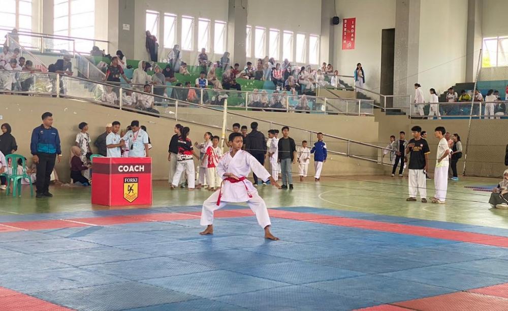 Batang - Ratusan pelajar mengikuti gelaran Pekan Olahraga Pelajar Daerah (Popda) Batang 2025 untuk cabang olahraga karate di Gor Abirawa Kabupaten Batang, Selasa (4/11/2025).