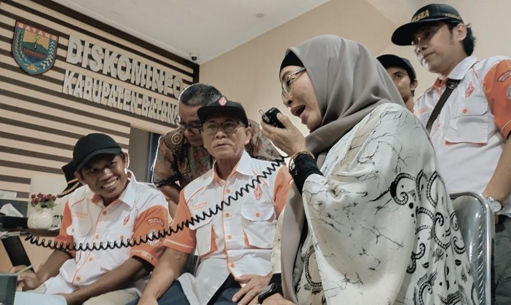 Penjabat (Pj) Bupati Batang Lani Dwi Rejeki (kedua kanan), menerima panggilan melalui frekuensi radio dari daerah lain dalam rangka Pemberian Ucapan Selamat Hari Jadi Kabupaten Batang Ke-58 di Kantor Dinas Komunikasi dan Informatika (Diskominfo) Batang, Kabupaten Batang, Jumat (19/4/2024). Kegiatan ini diselenggarakan oleh Radio Amatir Penduduk Indonesia (RAPI) dan Organisasi Amatir Radio Republik Indonesia (ORARI) Lokal, bekerjasama dengan Diskominfo Kabupaten Batang. MC Batang, Jateng/Ardhy/Jumadi