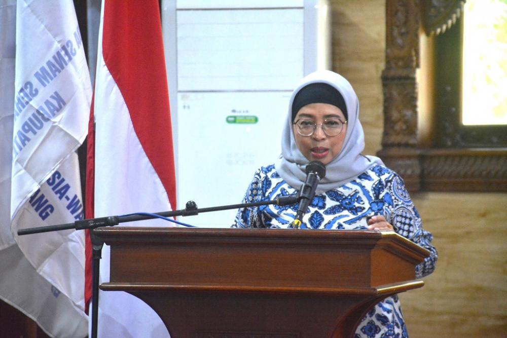 Penjabat (Pj) Bupati Batang Lani Dwi Rejeki memberikan, sambutan saat Pelantikan Senam Sehat Indonesia Wai Tan Kung (SSI-WTK) masa bhakti 2024-2028 di Aula Bupati Batang, Sabtu 15/6/2024). Pj Bupati Batang mengatakan, kepada pengurus baru SSI-WTK Batang dapat menjalankan tugas dengan baik dan mewujudkan program-program yang bermanfaat bagi masyarakat Batang. MC Batang, Jateng/Jumadi/Sri Rahayu