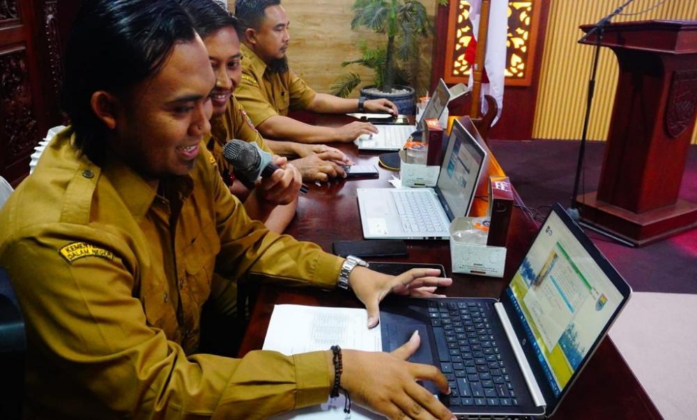Seorang perangkat Desa Kalisari, melakukan simulasi transaksi non tunai desa aplikasi Siskeudes online - Siskeudeslink - CMS dari Bank Jateng di Aula Bupati Batang, Kabupaten Batang, Senin (5/8/2024). Transaksi non tunai bisa digunakan berbagai jenis pembayaran desa yakni pengelolaan dana desa, Alokasi Dana Desa (ADD), DHP dan bantuan keuangan. MC Batang, Jateng/Roza/Jumadi