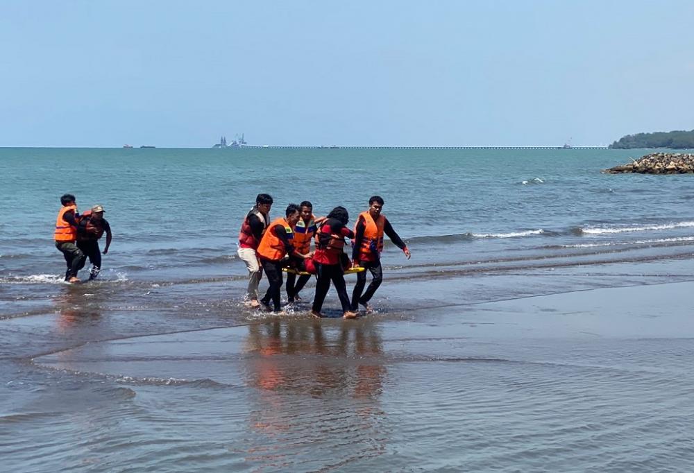 Sejumlah Tim Korp Sukarela (KRS) Palang Merah Indonesia (PMI) Batang melakukan, evakuasi korban saat simulasi penyelamatan di Pantai Sigandu Batang, Kabupaten Batang, Selasa (17/9/2024). Ketua PMI Batang Achmad Taufiq mengatakan, simulasi evakuasi memberikan pelampung kepada korban dan dibawa menggunakan tandu sebagai tindakan pertolongan pertama. MC Batang, Jateng/Roza/Jumadi