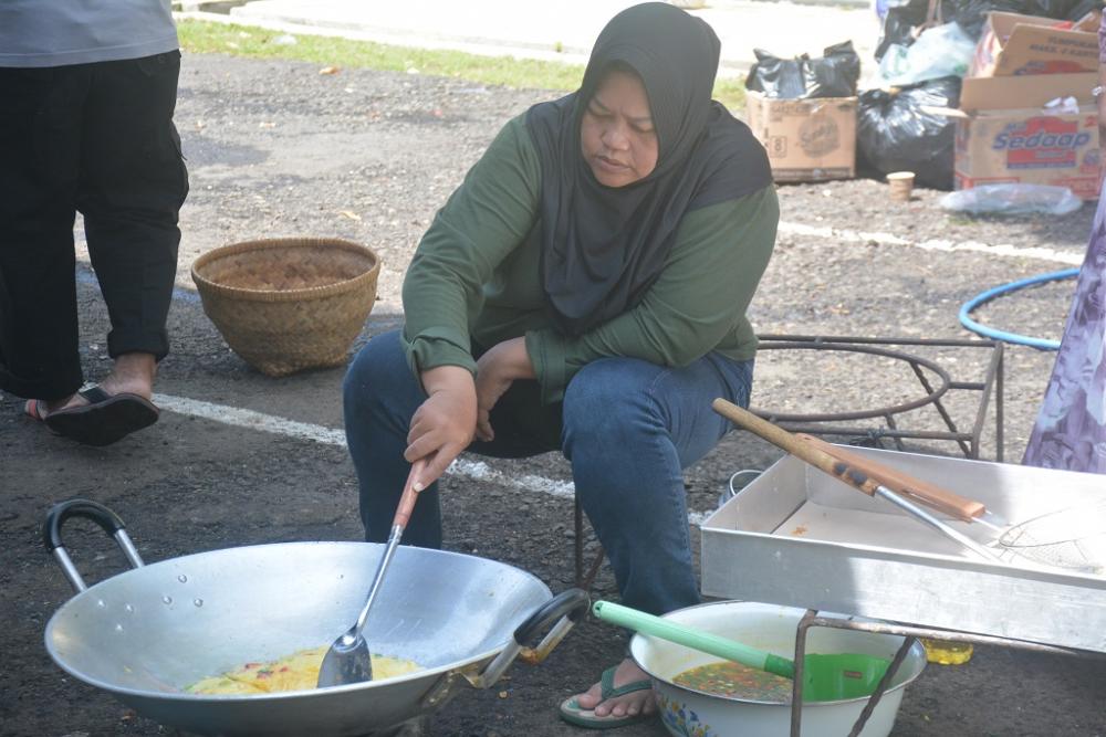 Salah satu relawan menggoreng telur dadar di Dapur Umum Dinsos Batang, Kabupaten Batang, Sabtu (25/1/2025). Dapur umum berfungsi sebagai tempat pengolahan makanan untuk di distribusikan kepada korban bencana banjir Desa Klidang Lor dan Karangasem Utara. MC Batang, Jateng/Jumadi/Sri Rahayu