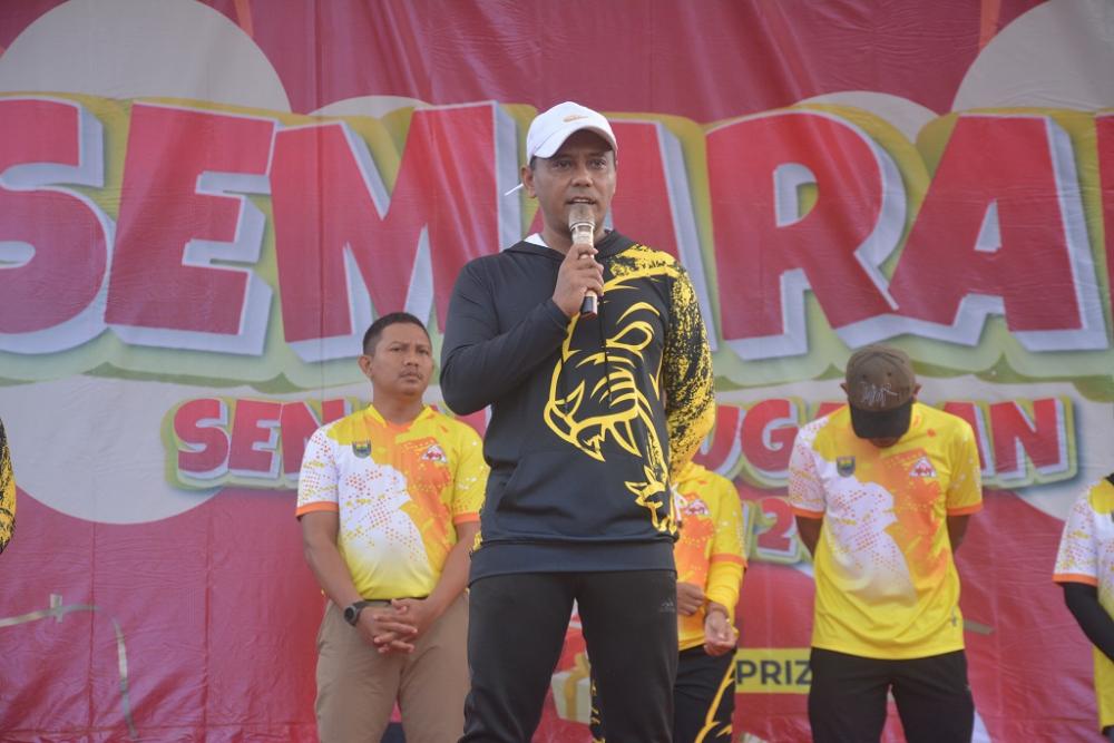 Ketua Asosiasi Senam Kebugaran Indonesia (ASKI) Batang Sigit Prihandoko memberikan sambutan saat senam kebugaran di GOR Abirawa Batang, Kabupaten Batang, Minggu (26/1/2025). Sigit Prihandoko menyampaikan, kegiatan ini diharapkan menuju tujuh kebiasaan masyarakat Indonesia yang hebat salah satunya adalah dengan membiasakan berolahraga. MC Batang, Jateng/Jumadi/Sri Rahayu