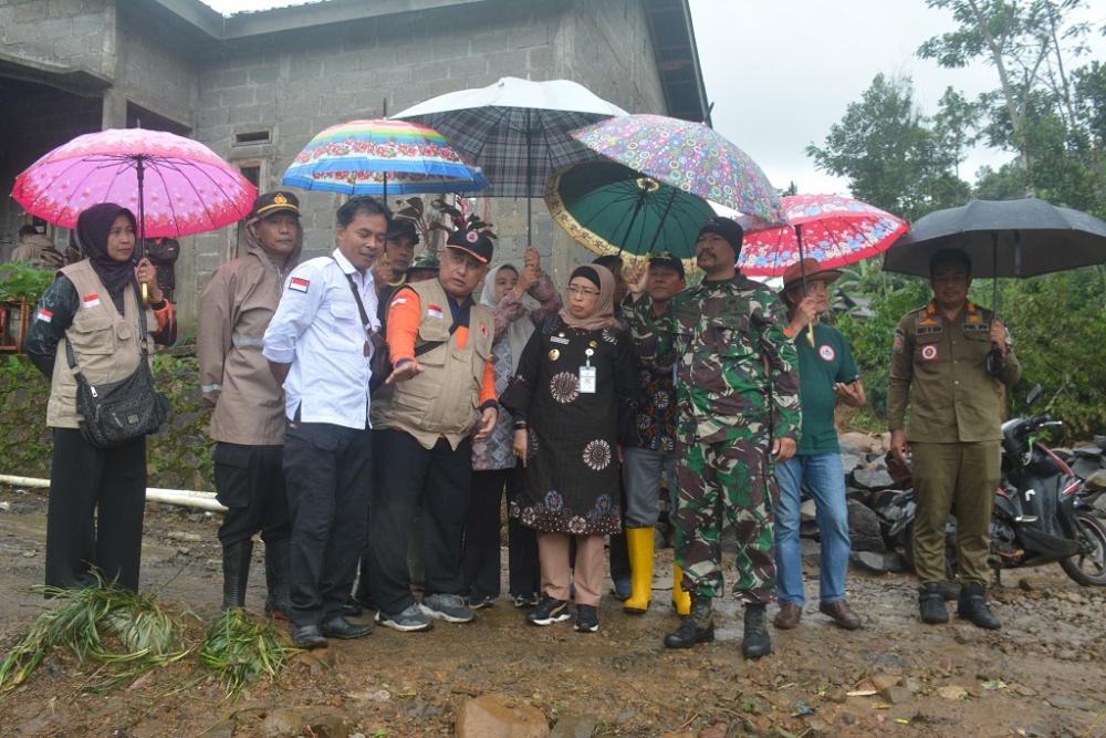 Penjabat (Pj) Bupati Batang Lani Dwi Rejeki (tengah), meninjau bencana tanah longsor di Desa Surjo Kecamatan Bawang Kabupaten Batang, Kamis (30/1/2025). Pj Bupati Batang mengimbau, kepada masyarakat waspada dan siaga terhadap potensi bencana. Berdasarkan prediksi Badan Meteorologi, Klimatologi, dan Geofisika (BMKG), banyak wilayah di Indonesia yang akan diguyur hujan pada periode 28-30 Januari 2025, termasuk saat Imlek. MC Batang, Jateng/Jumadi/Sri Rahayu