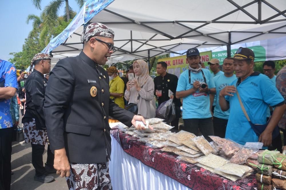 Bupati Batang M. Faiz Kurniawan (kedua kiri), meninjau stan Usaha Mikro, Kecil dan Menengah (UMKM) di halaman Pendapa Kabupaten Batang, Kamis (8/5/2025). Festival ini juga dimeriahkan dengan Sosialisasi Gemar Makan Ikan (GEMARIKAN) yang diikuti 400 anggota organisasi wanita, 50 nelayan lokal, 40 pengelola produk olahan ikan, dan lainnya. MC Batang, Jateng/Jumadi/Sri Rahayu
