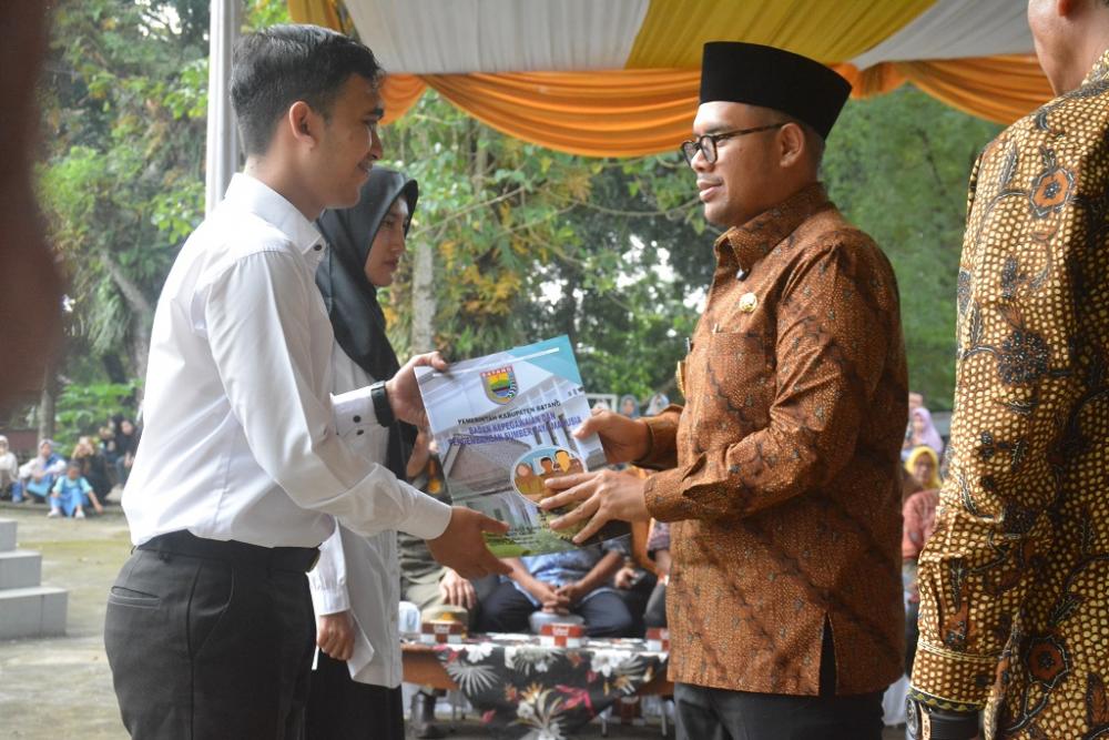Bupati Batang M. Faiz Kurniawan (Tengah), menyerahkan 158 Surat Keputusan (SK) secara simbolis kepada Calon Pegawai Negeri Sipil (CPNS) di THR Kramat Batang, Kabupaten Batang, Kamis (22/5/2025). Bupati Batang berpesan, para ASN agar menyiapkan diri untuk meningkatkan kapasitas melalui beasiswa dari Lembaga Pengelola Dana Pendidikan (LPDP). MC Batang, Jateng/Jumadi/Sri Rahayu