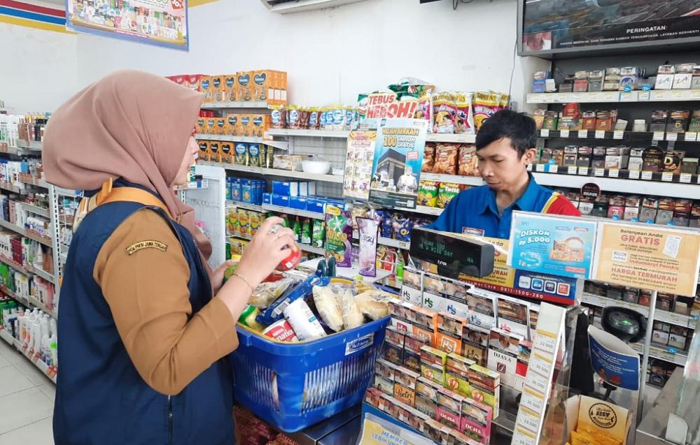 Kepala seksi Kefarmasian dan Alat Kesehatan Dinkes Batang Dania Fitra Tiara (kiri), menemukan beberapa barang tidak layak saat melakukan Monitoring atau Pengawasan Keamanan Pangan menjelang Idulfitri 1447 H di salah satu Minimarket Plelen, Kabupaten Batang, Senin (2/3/2026). Dania Fitra Tiara berharap, kepada penjual toko agar sesegera mungkin mengembalikan barang tersebut kepada produsen. MC Batang, Jateng/Jumadi
