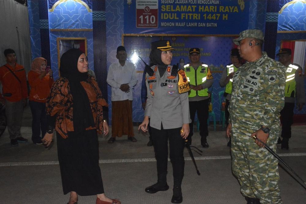Kapolres Batang AKBP Veronica (tengah), bersama unsur Forkopimda meninjau posko mudik lebaran di Exit Tol Warungasem, Kabupaten Batang, Jumat (20/3/2026). AKBP Veronica mengimbau, agar para pemudik selalu mengecek kondisi kendaraan maupun kesehatan diri, sebelum berkendara. Hal ini untuk mencegah hal yang tidak diinginkan, seperti laka lantas. MC Batang, Jateng/Jumadi