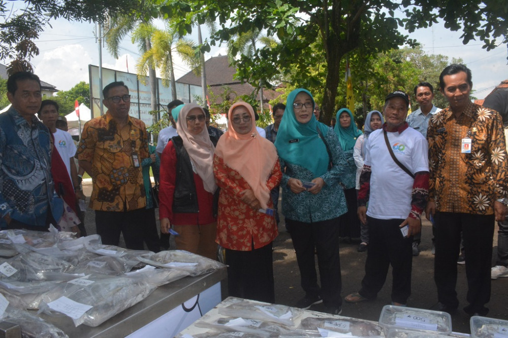 Wakil Bupati Batang Suyono (kanan), mengunjungi stan pelelangan ikan saat festival Gemar Makan Ikan (Gemarikan) di halaman Pendopo Kabupaten Batang, Kamis (30/4/2026). Festival Gemarikan diramaikan dengan berbagai rangkaian kegiatan, seperti lomba video tantangan makan ikan yang diikuti 23 peserta dari berbagai daerah, lomba video senam Gemari yang diikuti 34 sekolah, serta bazar produk olahan perikanan yang menghadirkan 45 jenis produk dari 20 UMKM. MC Batang, Jateng/Jumadi