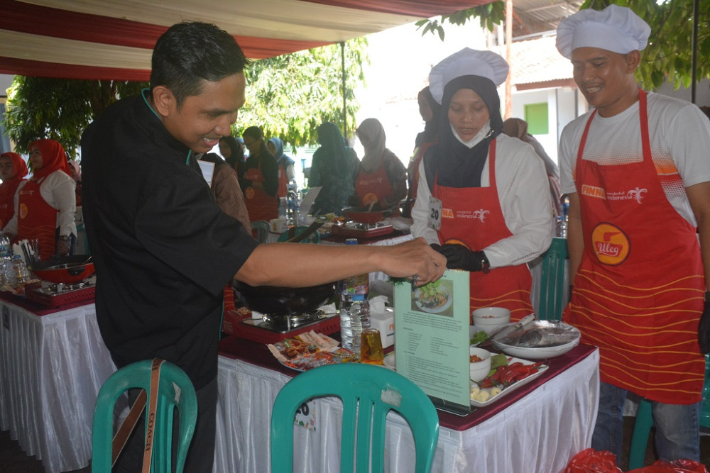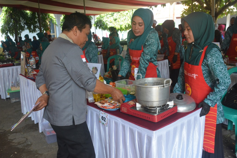 Salah satu juri (kanan), menilai lomba masak ikan saat festival Gemar Makan Ikan (Gemarikan) di halaman Pendapa Kabupaten Batang, Kamis (30/4/2026). Dalam penilaian lomba masak ikan kreativitas, penyajian, cita rasa serta keterampilan. Lomba masak ikan diikuti oleh 40 peserta terdiri dari 15 PKK se-Kabupaten Batang dan 25 umum. MC Batang, Jateng/Jumadi
