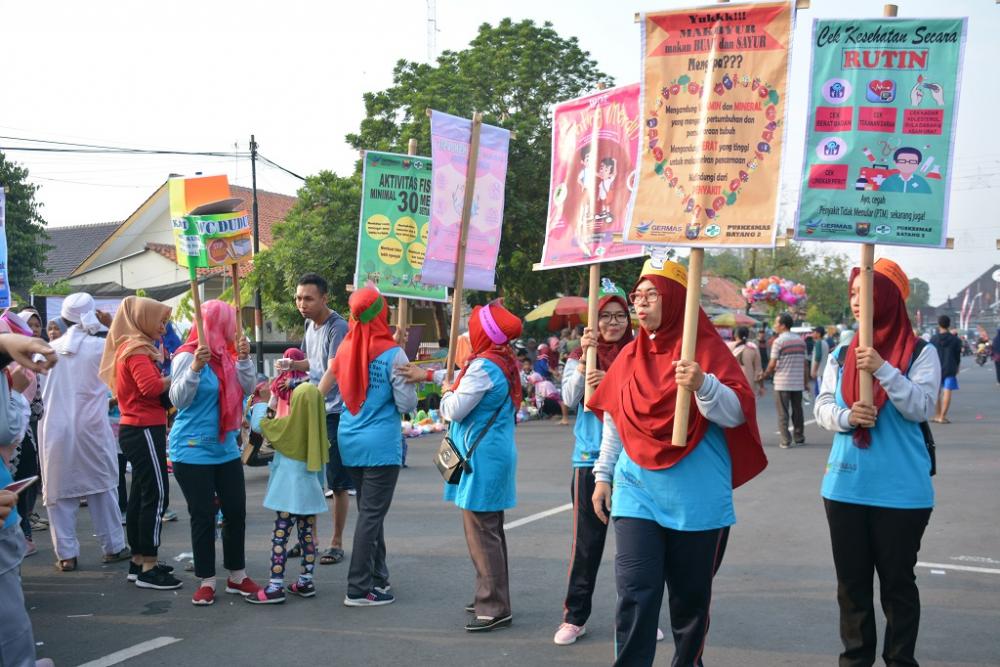 Sejumlah perawat Puskesmas Batang II, membawa poster Gerakan Masyarakat Hidup Sehat (Germas) dalam Car Free Day Kampanye Germas di Jalan Veteran Kabupaten Batang, Minggu (15/9/2019). Seorang panitia mengatakan kegiatan ini bertujuan untuk mengajak warga dalam melakukan pola hidup sehat. MC Batang, Jateng/Jumadi/Ardhy