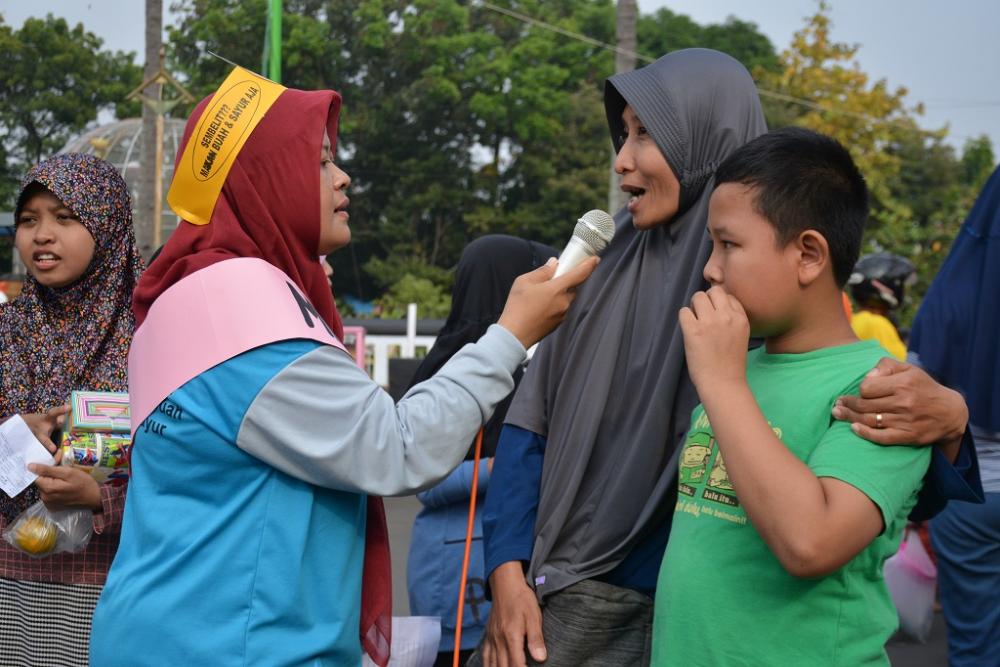 Perawat Puskesmas Batang II Sri Winarsih (kedua kiri), memberikan pertanyaan seputar kesehatan kepada warga (kedua kanan) di Jalan Veteran Kabupaten Batang, Minggu (15/9/2019). Kegiatan ini dalam rangka Car Free Day Kampanye Germas yang digelar oleh Puskesmas Batang II. MC Batang, Jateng/Jumadi/Ardhy