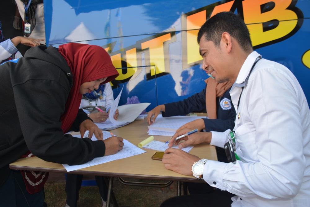 Seorang warga (kiri), mendaftar pelayanan Keluarga Berencana (KB) gratis dalam Peringatan Hari Ulang Tahun Tentara Nasional Indonesia ke-74 dan Kodam IV/Diponegoro ke-69 di Alun-alun Kabupaten Batang, Rabu (18/9/2019). Jenis KB yang diberikan antara lain, KB suntik, Alat Kontrasepsi Dalam Rahim (AKDR), KB implant. MC Batang, Jateng/Jumadi/Ardhy
