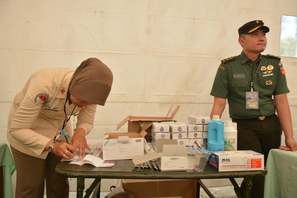Petugas kesehatan (kiri), menulis resep obat pasien sunat (khitan) massal dalam Peringatan Hari Ulang Tahun Tentara Nasional Indonesia ke-74 dan Kodam IV/Diponegoro ke-69 di Alun-alun Kabupaten Batang, Rabu (18/9/2019). Sunat massal diikuti oleh 50 anak dari berbagai daerah di Kabupaten Batang. MC Batang, Jateng/Jumadi/Ardhy