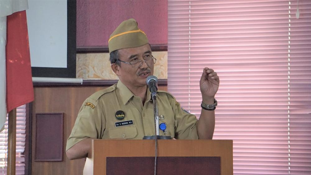 Sekretaris Daerah Kabupaten Batang Nasikhin, memberikan sambutan dalam Sosialisasi Peraturan Menteri Dalam Negeri Nomor 99 Tahun 2018 tentang pembinaan dan pengendalian penataan perangkat daerah di Ruang Pagilaran Kantor Badan Perencanaan, Penelitian, dan Pengembangan Kabupaten Batang, Senin (23/9/2019). Nasikhin mengatakan pengendalian penataan perangkat daerah bertujuan untuk menjamin perangkat daerah agar sesuai dengan ketentuan peraturan perundang-undangan. MC Batang, Jateng/Roza/Ardhy