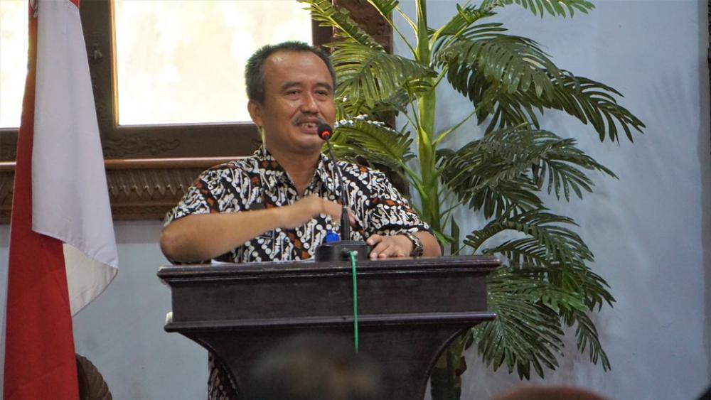 Sekretaris Daerah sekaligus Ketua Dewan Pengurus Korps Pegawai Republik Indonesia (DP KORPRI) Kabupaten Batang Nasikhin, memberikan sambutan dalam penyerahan tali asih kepada anggota KORPRI purna tugas di Aula Kantor Bupati Batang, Jumat (27/9/2019). Nasikhin menjelaskan tali asih ini merupakan iuran dari para anggota yang kemudian diberikan secara gotong-royong kepada anggota menjelang purna tugas sebagai tanda kepedulian dan perekat tali silaturahmi. MC Batang, Jateng/Roza/Ardhy