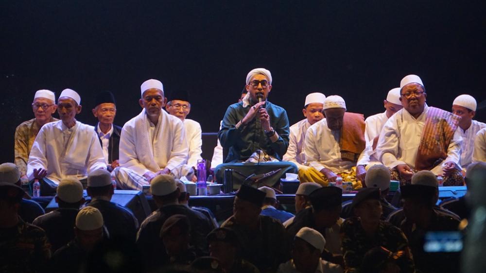 Habib Ali Zainal Abidin Assegaf (tengah) bersama Majelis Az Zahir, bersholawat bersama dalam Pembukaan Batang Expo 2019 di Alun-alun Kabupaten Batang, Kamis (3/10/2019). Kepala Bagian Perekonomian Sekretariat Daerah Kabupaten Batang Gagok Prasetyo mengatakan, Batang bersholawat sebagai acara utama pembukaan Batang Expo dimaksudkan agar lebih berkah dan lancar hingga penutupan acara. MC Batang, Jateng/Roza/Ardhy