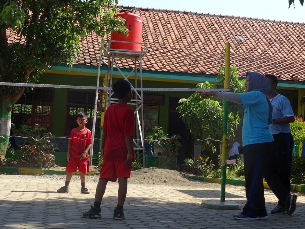 Seorang pelatih sepak takraw (kedua kanan), memberikan arahan kepada siswa jelang Persiapan Pekan Olahraga Pelajar Daerah (POPDA) Tingkat Kecamatan di Lapangan SD N Karangasem, Kabupaten Batang, Jumat (4/10/2019). Pelatih mengatakan bahwa dalam melakukan pertahanan dalam sepak takraw harus selalu fokus melihat bola yang jatuh di wilayah sendiri. MC Batang, Jateng/Umar/Ardhy
