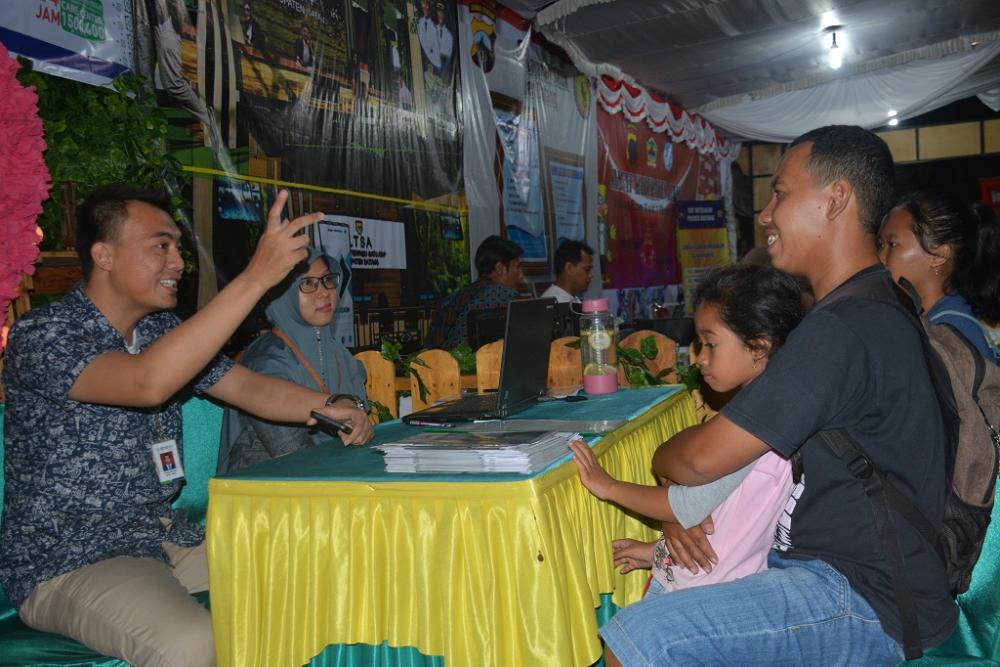 Staff Badan Penyelenggara Jaminan Sosial (BPJS) Kesehatan Kabupaten Batang (kiri), melayani warga dalam pendaftaran pembuatan BPJS Kesehatan saat Batang Expo 2019 di stand BPJS Kesehatan halaman Pendopo Kabupaten Batang, Sabtu (5/10/2019). Dalam pembuatan BPJS kesehatan syarat yang harus dipenuhi yaitu fotocopy Kartu Tanda Penduduk, fotocopy Kartu Keluarga, foto 3x4, fotocopy buku nikah, dan fotocopy Akta Kelahiran Anak. MC Batang, Jateng/Jumadi/Ardhy
