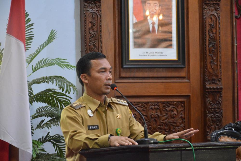 Bupati Batang Wihaji, memberikan sambutan saat sosialisasi peduli pelestarian perlindungan cagar budaya di Aula Kabupaten Batang, Senin (7/10/2019). Bupati Batang mengatakan Pemerintah Batang memiliki peninggalan peradaban dari Dinasti Syailendra yang akan diinventarisir dan dikemas dengan wisata. MC Batang, Jateng/Jumadi/Ardhy