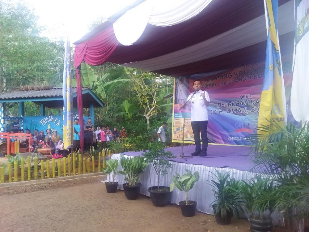 Bupati Batang Wihaji, memberikan sambutan saat Pencanangan Kampung Keluarga Berencana (KB) di Desa Sodong, Kecamatan Wonotunggal, Kabupaten Batang, Rabu (9/10/2019). Bupati Batang mengatakan pencanangan Kampung KB diharapkan membawa kesejahteraan bagi warga di bidang pendidikan dan perekonomian. MC Batang, Jateng/Heri/Ardhy