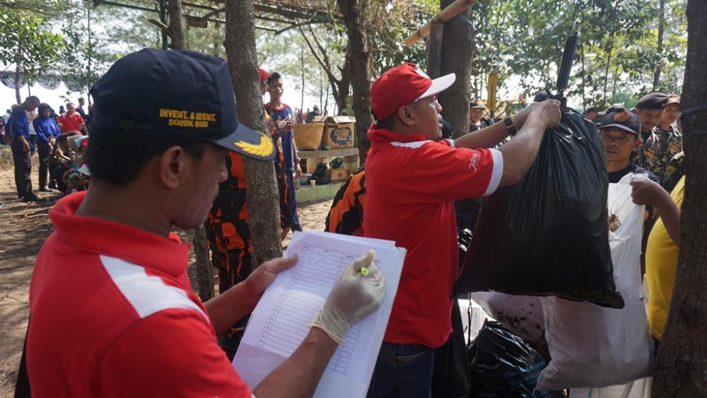 Petugas Dinas Lingkungan Hidup Provinsi Jawa Tengah (kiri), mencatat jumlah sampah usai ditimbang dalam Gerakan Pungut Sampah di Pantai Secepit, Kabupaten Batang, Jumat (18/10/2019). Petugas mengatakan pencatatan dilakukan agar mempermudah menghitung jumlah sampah yang terkumpul. MC Batang, Jateng/Roza/Ardhy