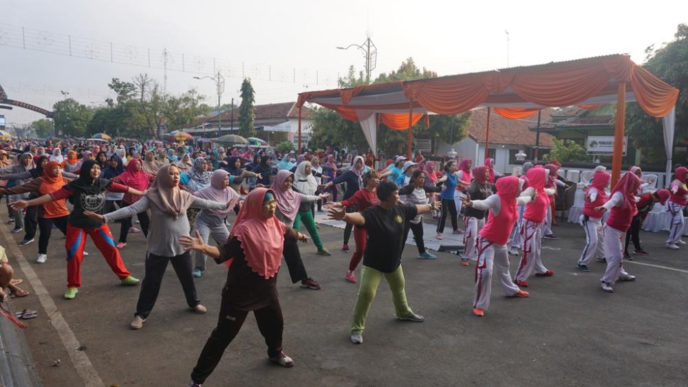 Peserta senam, melakukan senam massal dalam Peringatan Hari Ulang Tahun Srikandi Pemuda Pancasila ke-5 di Jalan Veteran Kabupaten Batang, Minggu (20/10/2019). Salah satu panitia mengatakan kegiatan ini bertujuan untuk mewujudkan gerakan pemuda tanpa narkoba. MC Batang, Jateng/Roza/Ardhy