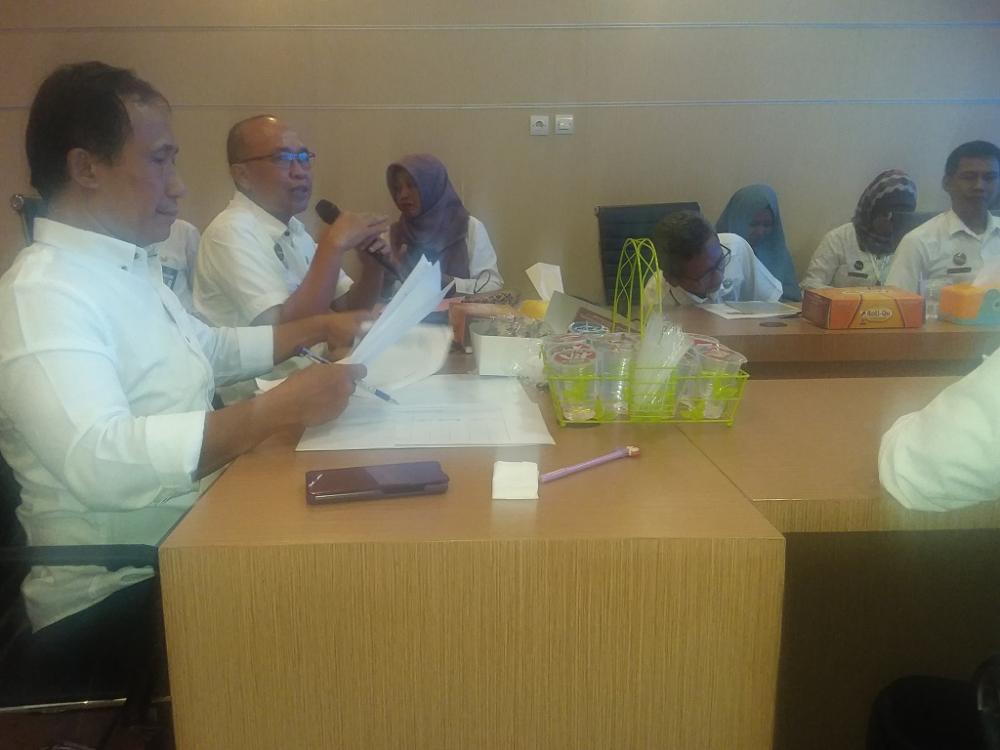 Kepala Dinas Komunikasi dan Informatika Kabupaten Batang Jamal Abdul Naser (kedua kiri), memberikan sambutan saat pemeriksaan dokumen Badan Publik di ruang Analitic Dinas Komunikasi dan Informatika Kabupaten Batang, Rabu (23/10/2019). Jamal mengatakan pihaknya selalu melakukan inovasi terbaru yaitu membentuk Pejabat Pengelola Informasi dan Dokumentasi Desa, serta menggelar Pemeringkatan Badan Publik Tingkat Kabupaten Batang. MC Batang, Jateng/Heri/Ardhy