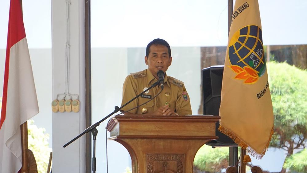 Wakil Bupati Batang Suyono, memberikan sambutan sosialisasi Pendaftaran Tanah Sistematis Lengkap (PTSL) Tahun Anggaran 2020 di Pendopo Kabupaten Batang, Senin (11/11/2019). Wakil Bupati Batang mengatakan PTSL di seluruh wilayah Indonesia, dilaksanakan secara gratis, hanya dikenakan biaya kesepakatan bersama senilai Rp150.000,00 untuk kepanitiaan desa. MC Batang, Jateng/Roza/Ardhy