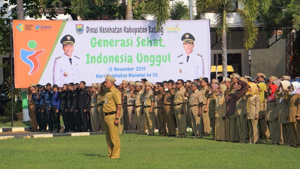 Sejumlah peserta, melakukan Upacara Peringatan Hari Kesehatan Nasional di halaman Pendopo Kabupaten Batang, Selasa (12/11/2019). Upacara diikuti oleh Dinas Kesehatan, petugas Pusat Kesehatan Masyarakat, Rumah Sakit, Pasukan 119 Si Slamet, Pemadam Kebakaran, dan relawan kesehatan se-Kabupaten Batang. MC Batang, Jateng/Roza/Ardhy