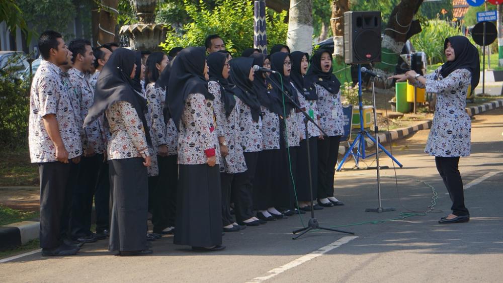 Tim paduan suara dari Dinas Kesehatan Kabupaten Batang, menyanyikan lagu mars kesehatan saat Upacara Peringatan Hari Kesehatan Nasional di halaman Pendopo Kabupaten Batang, Selasa (12/11/2019). Upacara diikuti oleh Dinas Kesehatan, petugas Pusat Kesehatan Masyarakat, Rumah Sakit, Pasukan 119 Si Slamet, Pemadam Kebakaran, dan relawan kesehatan se-Kabupaten Batang. MC Batang, Jateng/Roza/Ardhy