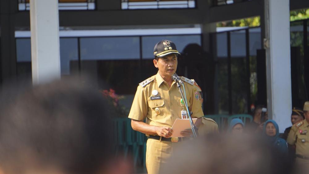 Wakil Bupati Batang Suyono, memberikan sambutan saat Upacara Peringatan Hari Kesehatan Nasional di halaman Pendopo Kabupaten Batang, Selasa (12/11/2019). Wakil Bupati Batang mengatakan untuk mencapai generasi sehat Indonesia unggul, perlu adanya pembangunan kesehatan untuk sumber daya manusia dengan cara menurunkan angka stunting dan menjamin kesehatan nasional. MC Batang, Jateng/Roza/Ardhy