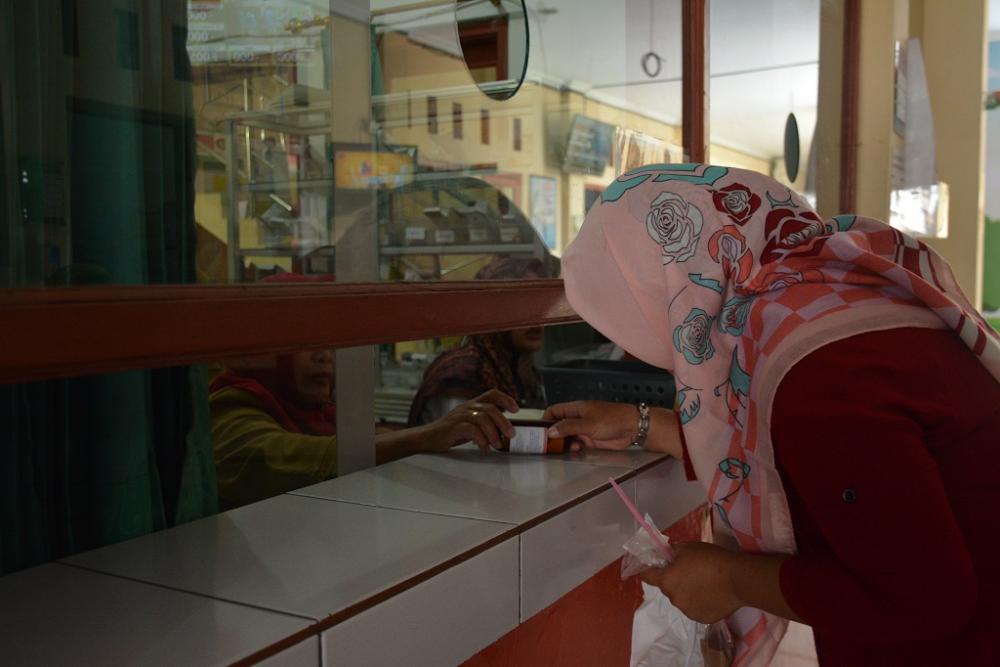 Seorang pasien (kanan), menebus resep obat di Pusat Kesehatan Masyarakat (Puskesmas) Batang II Kabupaten Batang, Selasa (12/11/2019). Petugas Puskesmas memberikan obat sesuai resep yang diberikan oleh dokter. MC Batang, Jateng/Jumadi/Ardhy
