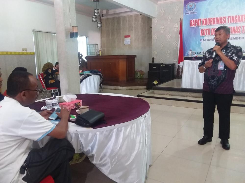 Kepala Badan Narkotika Nasional Kabupaten Batang AKBP Windarto (kanan), memberikan materi dalam Rapat Koordinasi bersama para Lurah di Desa Kalisalak, Kabupaten Batang, Jumat (15/11/2019). AKBP Windarto mengatakan, semua proses transaksi jual beli narkoba tidak dilakukan secara langsung melainkan ditransfer melalui Anjungan Tunai Mandiri. MC Batang, Jateng/Heri/Ardhy