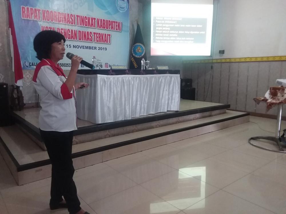 Kepala Seksi Rehabilitasi Badan Narkotika Nasional Kabupaten Batang Retno Damayanti, memberikan materi tahapan rehabilitasi bagi korban penyalahgunaan narkoba dalam Rapat Koordinasi bersama para Lurah di Desa Kalisalak, Kabupaten Batang, Jumat (15/11/2019). Retno mengatakan rehabilitasi dibagi menjadi tiga yaitu medis di bawah pengawasan dokter, non medis melalui pendekatan sosial keagamaan dan bina lanjut dengan memberikan kegiatan sesuai bakat serta minat. MC Batang, Jateng/Heri/Ardhy