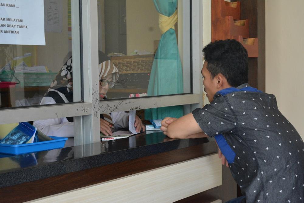 Seorang pasien (kanan), menebus resep obat di Rumah Sakit Umum Daerah (RSUD) Kabupaten Batang, Rabu (20/11/2019). Petugas RSUD Kabupaten Batang memberikan obat sesuai resep yang diberikan oleh dokter. MC Batang, Jateng/Jumadi/Ardhy