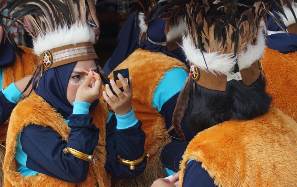 Peserta, melakukan make up jelang Lomba Kreasi Senam Maumere Peringatan Hari Ulang Tahun (HUT) Dharma Wanita Persatuan Ke-20 Tingkat Kabupaten Batang di Pendopo Kabupaten Batang, Kamis (21/11/2019). Lomba diikuti 49 tim anggota Dharma Wanita dengan kriteria lomba meliputi teknik gerak, kreasi, dan kekompakan. MC Batang, Jateng/Roza/Ardhy