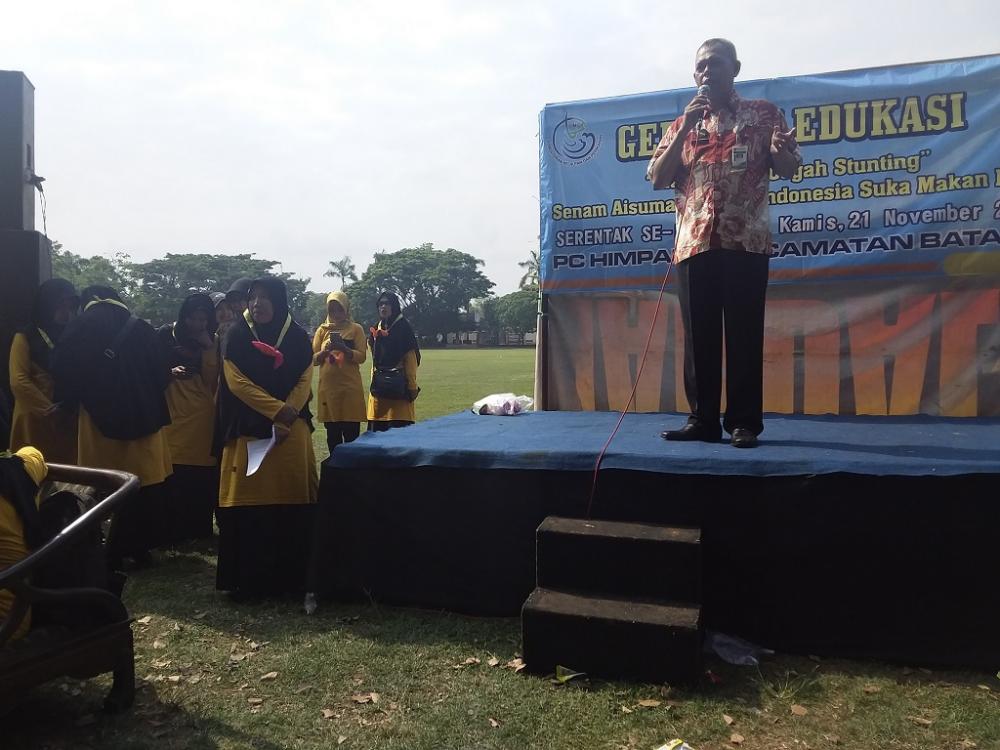 Sekretaris Kecamatan Batang Muhammad, memberikan sambutan saat Senam Aisumaki (Anak Indonesia Suka Makan Ikan) di lapangan Dracik Kampus Proyonanggan Selatan, Kabupaten Batang, Kamis (21/11/2019). Muhammad mengatakan, senam bersama ini dapat menanamkan pada pikiran anak, bahwa makan ikan setiap hari baik untuk kecerdasan. MC Batang, Jateng/Heri/Ardhy #visitbatangyear2022