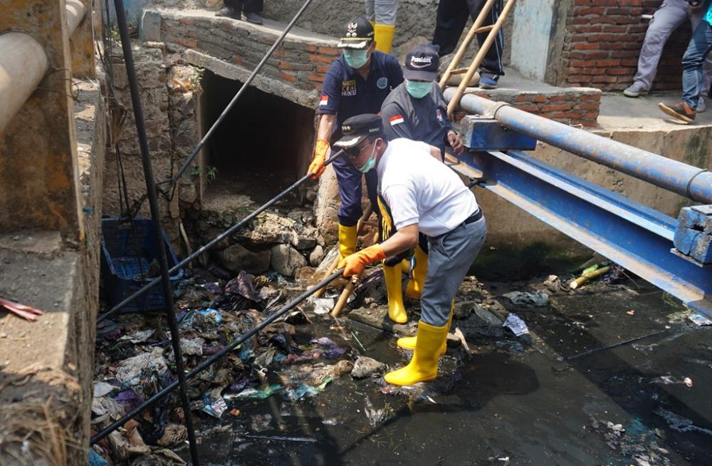 Bupati Batang Wihaji (kanan) didampingi Wakil Bupati Batang Suyono (kiri), membersihkan sampah dalam Resik Kali Bareng atau Aksi Bersih Sungai di Desa Karangasem Utara Kabupaten Batang, Jumat (22/11/2019). Kegiatan ini diikuti puluhan relawan kebersihan antara lain, Badan Penanggulangan Bencana Daerah, Dinas Lingkungan Hidup, Pemadam Kebakaran, Banser, Polri, TNI, dan warga sekitar. MC Batang, Jateng/Roza/Ardhy #visitbatangyear2022