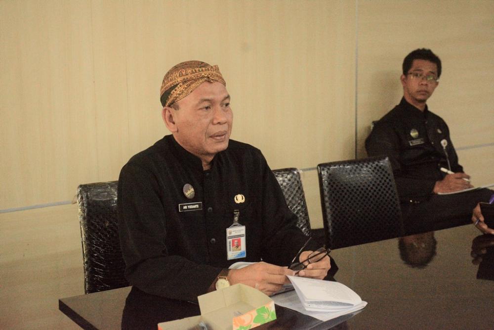 Kepala Badan Perencanaan, Penelitian, dan Pengembangan Kabupaten Batang Ari Yudianto (kiri) memberikan sambutan dalam Forum Diskusi Indeks Pembangunan Kesehatan Masyarakat Batang di Ruang Sigandu Bapelitbang Kabupaten Batang, Senin (9/12/2019). Ari mengatakan IPKM sebagai indikator yang menggambarkan kemajuan pembangunan kesehatan. Ada tiga manfaat IPKM antara lain sebagai indikator untuk menentukan peringkat Provinsi dan Kabupaten atau Kota dalam keberhasilan pembangunan kesehatan masyarakat, sebagai bahan advokasi ke pemerintah daerah baik provinsi maupun kabupaten atau kota agar terpacu menaikkan peringkatnya. MC Batang, Jateng/Roza/Jumadi.