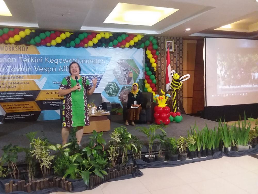 Pakar kesehatan Tri Maharani menjelaskan cara penanganan sengatan Tawon Vespa Affinis di Ballroom Hotel Sahid Mandarin Kota Pekalongan, Senin (9/12/2019). Tri Maharani mengatakan, ketika pengelolaan sampah organanik di daerah bagus, maka Tawon Vespa Affinis tidak akan mendapatkan makanan, sehingga populasinya dapat dikurangi. MC Batang, Jateng/Heri/Jumadi