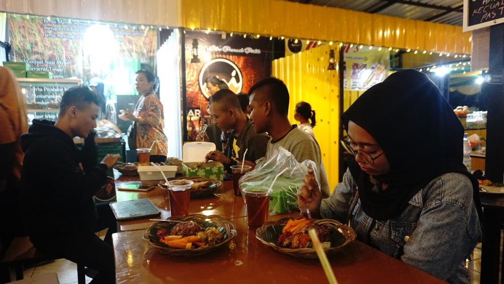 Sejumlah pengunjung, menikmati kuliner yang disediakan saat Launching Plataran Food and Gallery di Jalan Dr. Wahidin, Kabupaten Batang, Jumat (27/12/2019). Plataran Food and Gallery memiliki 20 stand yang digagas oleh Dewan Kerajinan Nasional Daerah untuk mewadahi pencinta kuliner dan seni kerajinan khas Kabupaten Batang. MC Batang, Jateng/Ardhy/Jumadi