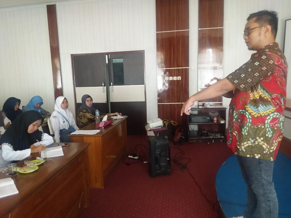 Kepala Instalasi Gawat Darurat RSUD Batang, dr. Alfian Wirawan (kanan), menujukkan simulasi penanganan luka di Aula Dinas Kesehatan Kabupaten Batang, Selasa (11/2/2020). dr. Alfian mengatakan, hentikan pendarahan dengan kain kasa steril, bersihkan seluruh luka menggunakan air mengalir, oleskan obat luka lalu balut memakai kasa steril dan lakukan penggantian pembalut luka setiap 6-12 jam sekali. MC Batang, Jateng/Heri/Jumadi