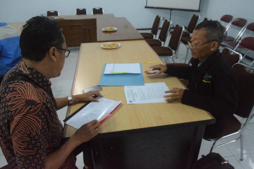 Seorang petugas verifikasi, mengecek data identitas Organisasi Masyarakat (Ormas) untuk penerimaan dana hibah dari Kantor Kesatuan Bangsa Dan Politik (Kesbangpol) Provinsi Jawa Tengah di Aula Kesbangpol Kabupaten Batang, Senin (24/2/2020). Data identitas ormas harus memenuhi persyaratan mulai dari badan hukum, izin pendirian, terkait dengan verifikasi yang dibutuhkan. MC Batang, Jateng/Roza/Jumadi