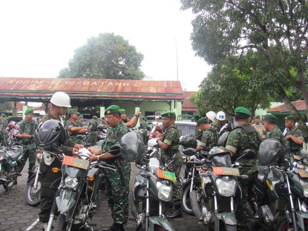 Anggota Sub Denpom 1-2/Pekalongan memeriksa kelengkapan kendaraan dinas dan pribadi prajurit Kodim 0736/Batang di Makodim, Kabupaten Batang, Selasa (25/02/2020). Dansub Denpom 1-2/Pekalongan Kapten Cpm Sukristianto mengharapkan, pada pelaksanaan penegakan dan ketertiban jalan raya seluruh personel sudah melengkapi surat kendaraan, sehingga tidak ditemukan pelanggaran. MC Batang, Jateng/Heri/Jumadi