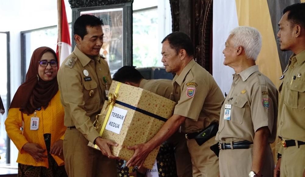 Wakil Bupati Batang Suyono (kedua kiri), memberikan apresiasi kepada Organisasi Perangkat Daerah (OPD) taat pajak dalam Aksi Panutan Penyampaian Surat Pemberitahuan Tahunan (SPT) di Pendopo Kabupaten Batang, Selasa (10/3/2020). Apresiasi diberikan kepada beberapa OPD dan Kecamatan atas pemenuhan kewajiban perpajakan yang dilporkan tepat waktu. MC Batang, Jateng/Ardhy/Jumadi
