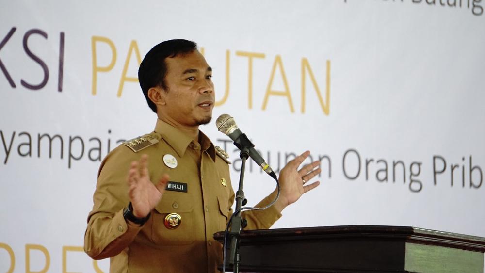 Bupati Batang Wihaji, memberikan sambutan dalam Aksi Panutan Penyampaian Surat Pemberitahuan Tahunan (SPT) di Pendopo Kabupaten Batang, Selasa (10/3/2020). Bupati Batang berpesan, kepada masyarakat wajib pajak untuk segera melakukan penyampaian SPT Tahunan guna membangun Jawa Tengah dan Indonesia. MC Batang, Jateng/Ardhy/Jumadi