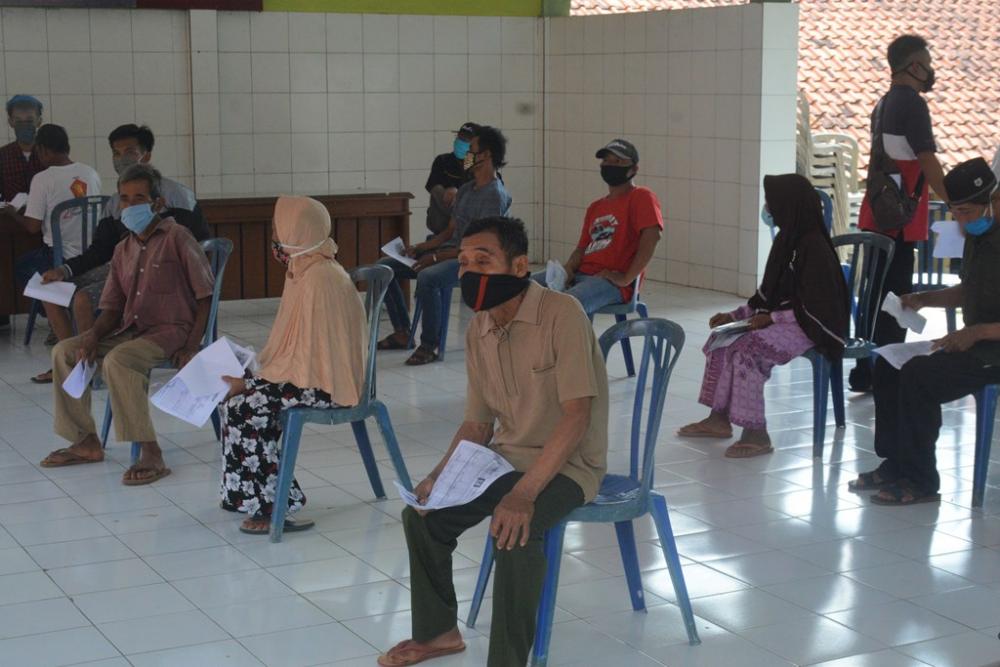 Sejumlah warga, mengantri penerima data Bantuan Sosial Tunai (BST) di Pendopo Kecamatan Subah Kabupaten Batang, Minggu (17/5/2020). Antrian penerimaan BST dilakukan dengan memperhatikan protokol kesehatan dengan menjaga jarak minimal 2 meter. MC Batang, Jateng/Roza/Jumadi