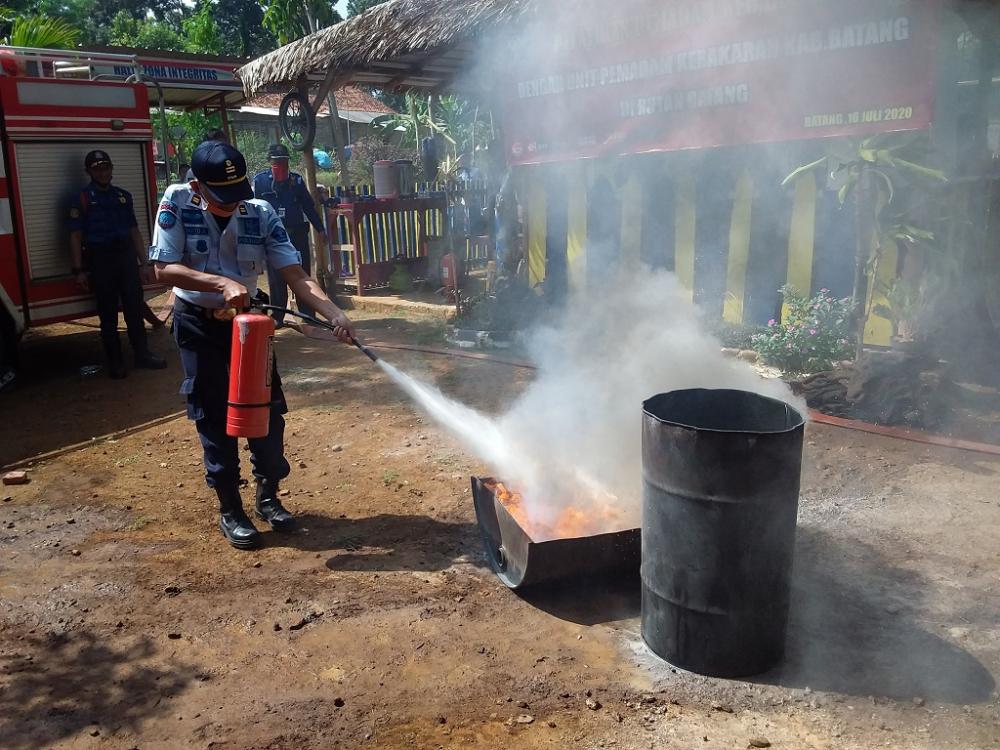 Seorang staf Rutan Kelas IIB Batang (kiri), memadamkan api dengan hydrant di Kawasan Kebun Rutan Kelas IIB Kabupaten Batang, Kamis (16/7/2020). Kepala Bidang Pemadam Kebakaran (Damkar) Satpol PP, Muhammad Safi’I mengatakan, peralatan yang sangat dibutuhkan Rutan Batang yaitu Hydrant, untuk mempermudah mendorong air dan memperbanyak Alat Pemadam Api Ringan (APAR) khususnya pada ruangan yang beresiko menimbulkan bahaya kebakaran MC Batang, Jateng/Fristinia/Jumadi